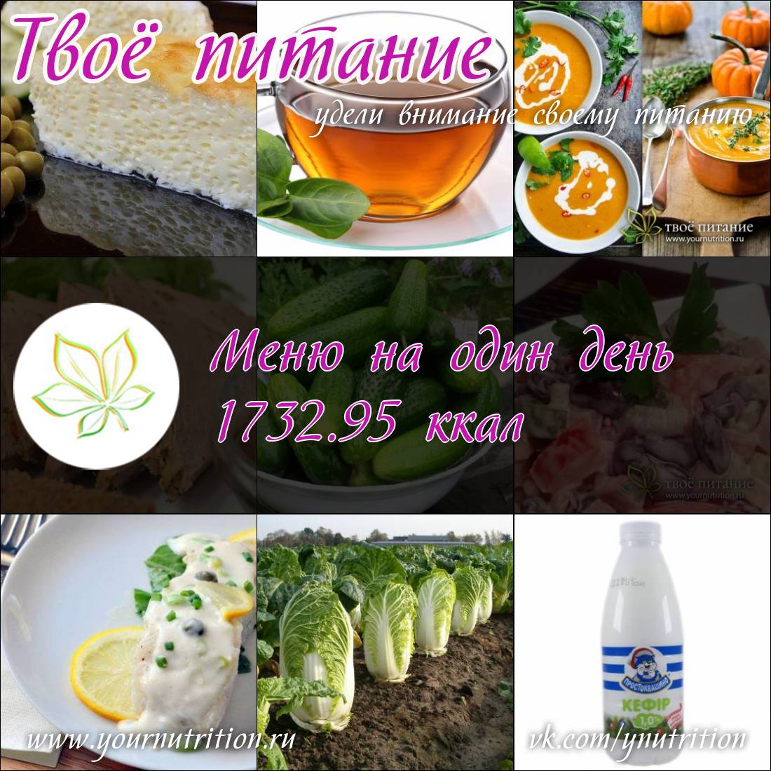 Меню на один день 1732.95 ккал